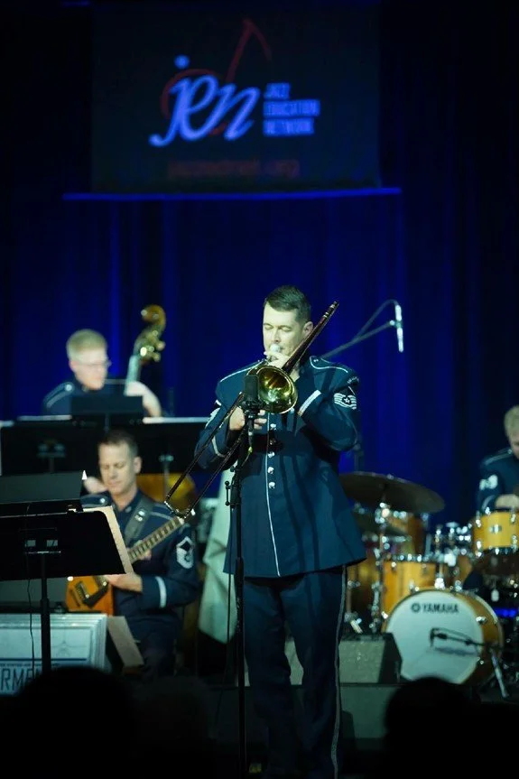 Jeff Martin is a jazz trombonist, educator, composer, and arranger whose work reflects a lifelong commitment to performance, creative scholarship, and teaching. He was the Second Trombonist, Assistant Music Director, and Composer/Arranger for the United States Air Force’s premier jazz ensemble, the USAF Airmen of Note. In those roles, he performed internationally and contributed original compositions and large-ensemble arrangements to the contemporary big band repertoire. His creative voice is grounded in a deep respect for the jazz tradition and a belief that improvisation is both disciplined craft and personal expression. A dedicated educator, Martin mentors emerging musicians in developing technical command, stylistic fluency, and the confidence to discover their own artistic voice. Whether on stage, in rehearsal, or working with students, he strives to connect performance, composition, and pedagogy in inspiring and meaningful ways.